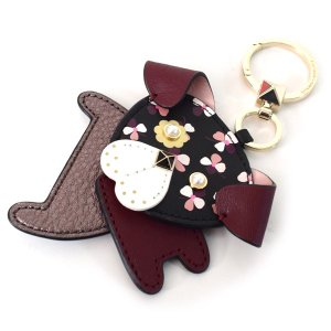 商品名:kate spade レザー ドッグ 花柄 アップリケ パール リベット スタッズ キーフォブ チャーム キーホルダー 品番:WORU0297 カラー:チェリーウッド(cherry wood) 素材:レザー サイズ(約):モチーフ:縦10cm(最長部)×横10.2cm(最長耳の部分) 全長 16.5cm アメリカ kate spade より購入!新品タグ付。