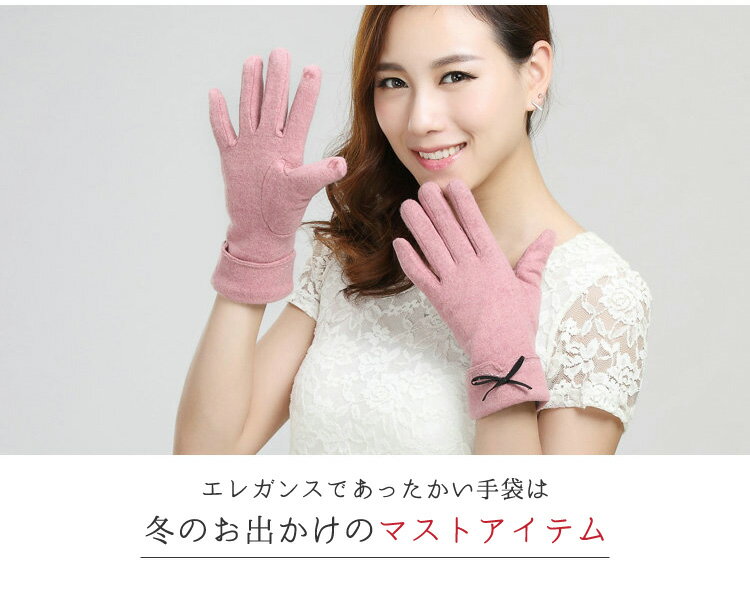 手袋 レディース ウール 黒 スマホ手袋 暖かい 赤 薄手 かわいい 可愛い 紺 サイクリング スマートフォン対応 スマホ タッチパネル対応 ふわふわ 冬 リボン グローブ 雑貨 オシャレ 防寒 自転車 パーティー プレゼント ネイビー ピンク 通勤 通学