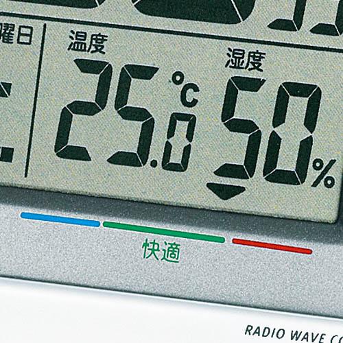 SEIKO 温湿度表示に加え、快適度表示が健康管理を応援 商品仕様 枠材 プラスチック枠 前面:ガラス サイズ重さ 99x146x50mm250g 電池 単3(マンガン)×2(電池寿命約1年間) 機能 電波修正機能(40kHz/60kHz自動選局・受信OFF機能つき)ダンダントーンアラーム(4段階)アラームオートストップ機能(約5分間)スヌーズつきアラームモニター機能ライトつき2099年までのフルオートカレンダー機能温湿度表示(温度測定範囲:0℃〜40℃ 測定精度:±2℃ 湿度測定範囲:25%RH〜85%RH 測定精度:±8%(25℃))快適度表示(6段階)12時間制/24時間制切替式電池切れ予告機能(液晶) 関連商品 SQ777L SQ777W SQ776W メーカー希望小売価格はメーカーサイトに基づいて掲載しています関連商品 SQ777L SQ777W SQ776W